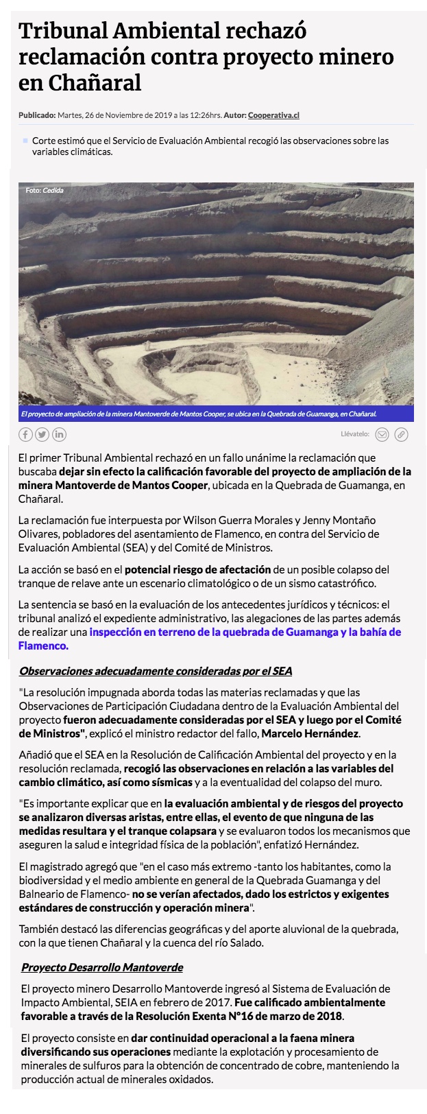 Tribunal Ambiental rechaza reclamación contra ampliación de minera Mantoverde - (DF Online)