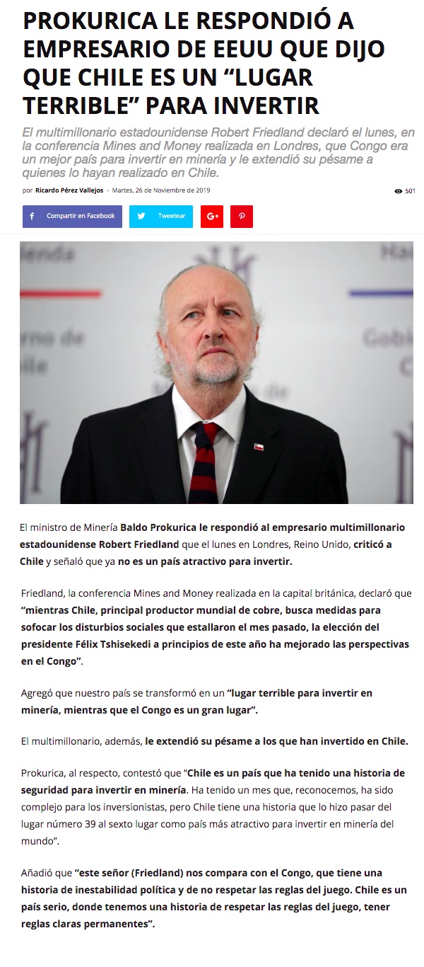 Ministro Prokurica asegura que el gobierno buscará garantizar inversiones mineras pese a crisis social - (Maray Online)