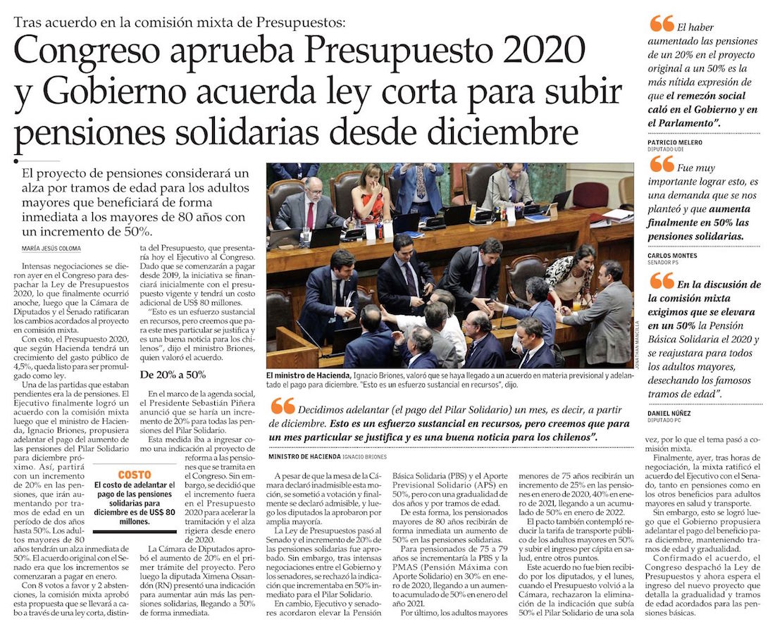 Briones destraba Presupuesto 2020 tras proponer pago adelantado de pensiones: gasto subirá 4,5% - (Diario Financiero)