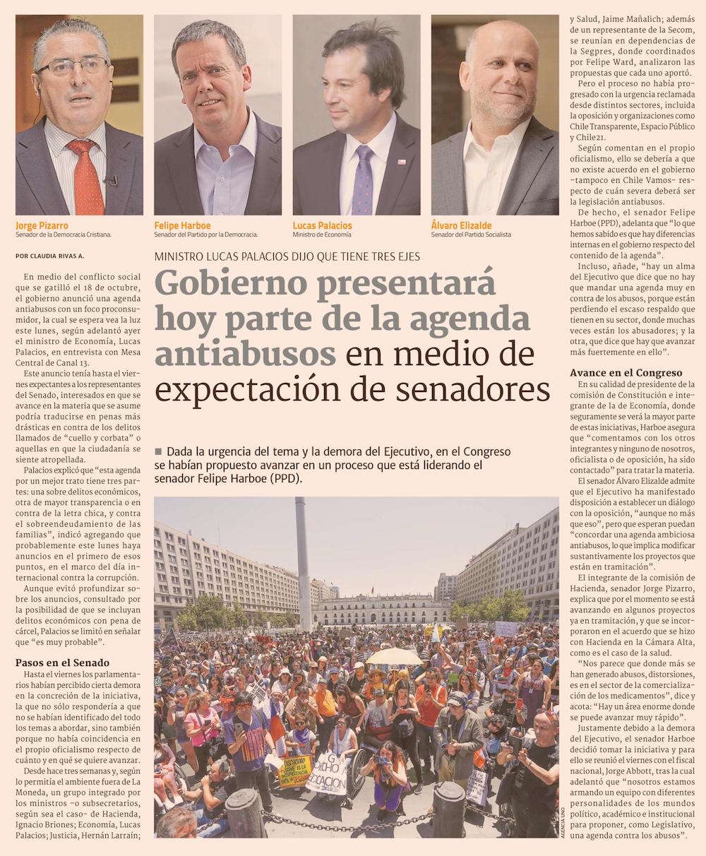 Gobierno plantea agenda contra delitos económicos que eleva penas de cárcel para colusión en “bienes esenciales” - (El Mercurio de Santiago)