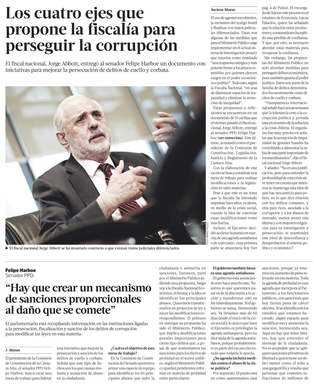 Gobierno presentará hoy parte de la agenda antiabusos en medio de expectación de senadores - (Diario Financiero)