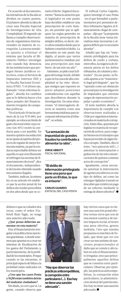 Gobierno plantea agenda contra delitos económicos que eleva penas de cárcel para colusión en “bienes esenciales” - (El Mercurio de Santiago)