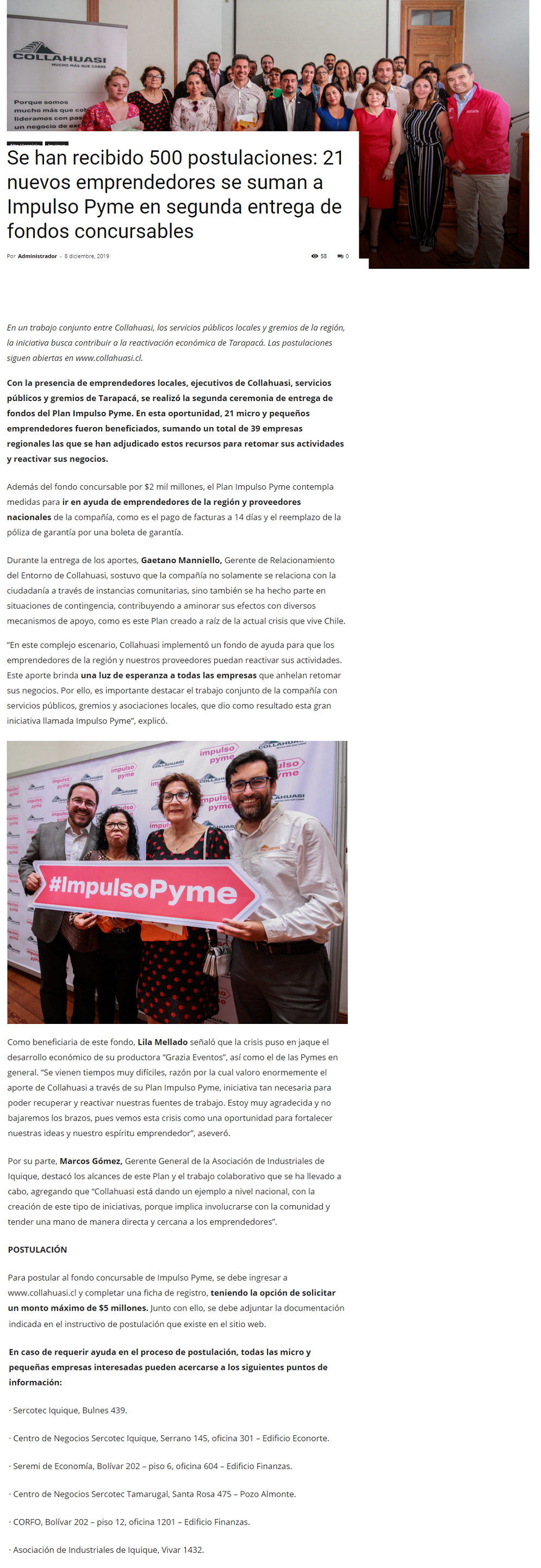 21 nuevos emprendedores se suman a Impulso Pyme en segunda entrega de fondos concursables - (elreporterodeiquique)