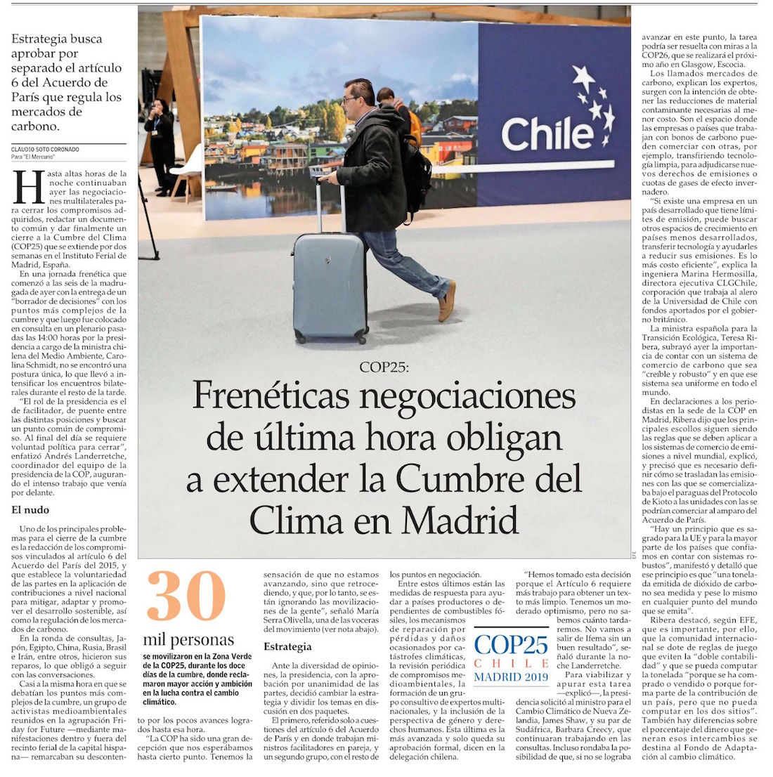 La cumbre del clima en Madrid logra llegar a un acuerdo, pero que no convence - (El Mercurio de Santiago)