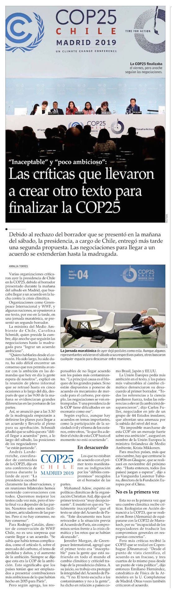 Críticas a la gestión de Chile marcan desenlace de la COP25 - (La Tercera)