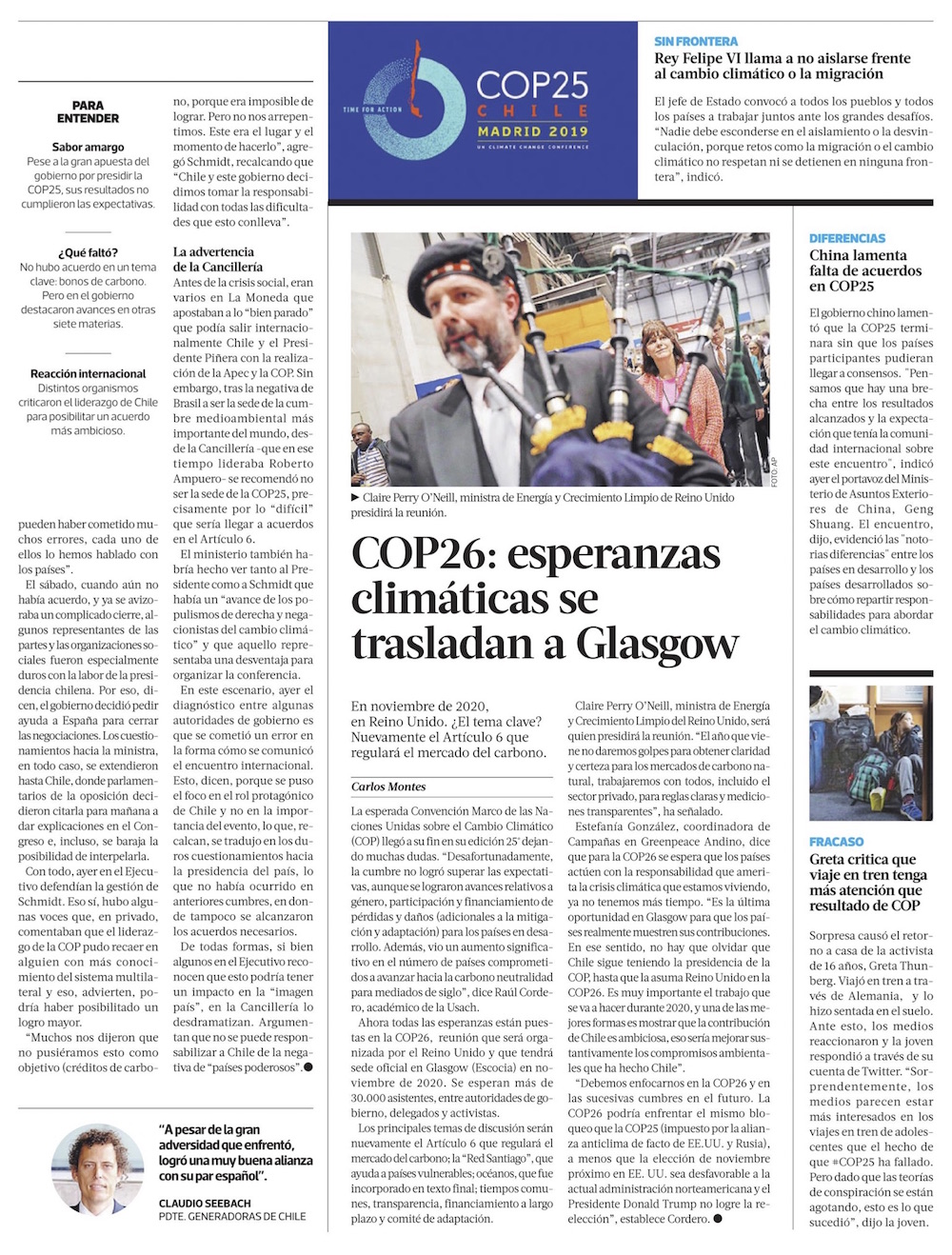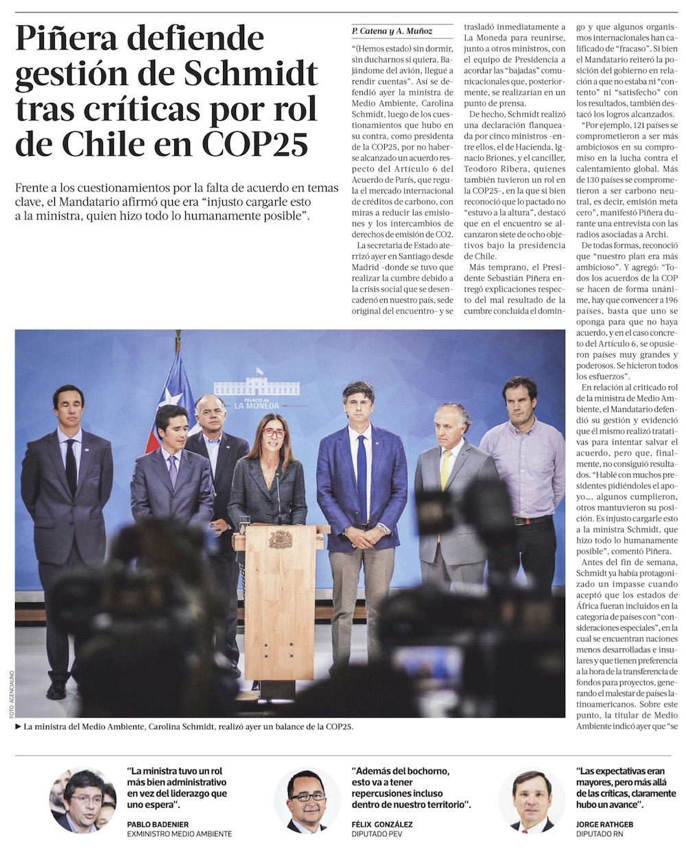 La presidencia de Chile en la COP25 es cuestionada, pero también recibe apoyos - (El Mercurio de Santiago)