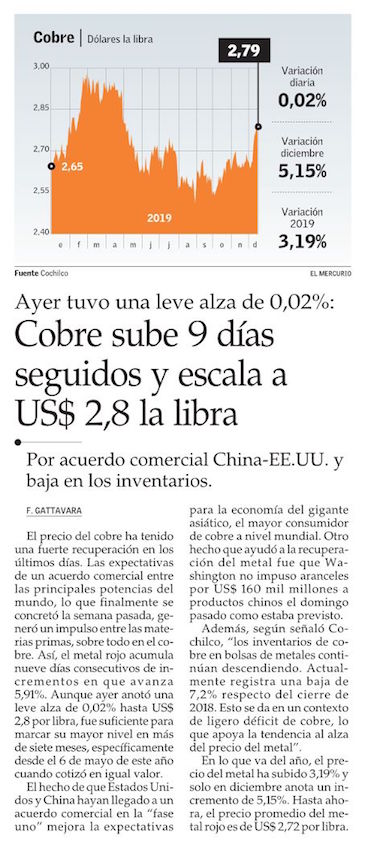 Precio del cobre acumula su novena alza consecutiva tras la mejora del conflicto arancelario entre China y EE.UU. - (El Mostrador)