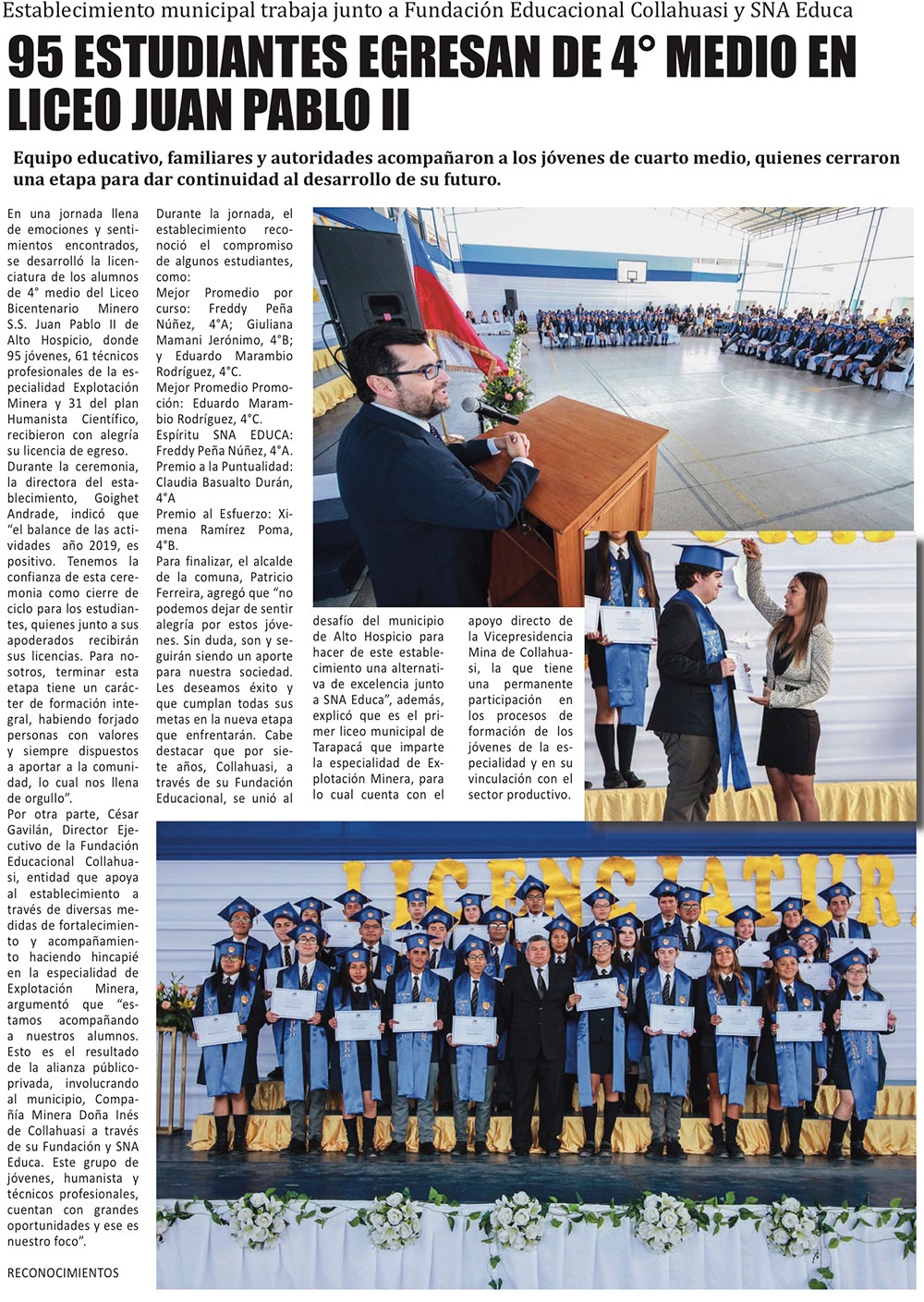 Liceo de Pica inicia el 2020 como nuevo liceo Bicentenario - (El Longino de Iquique)