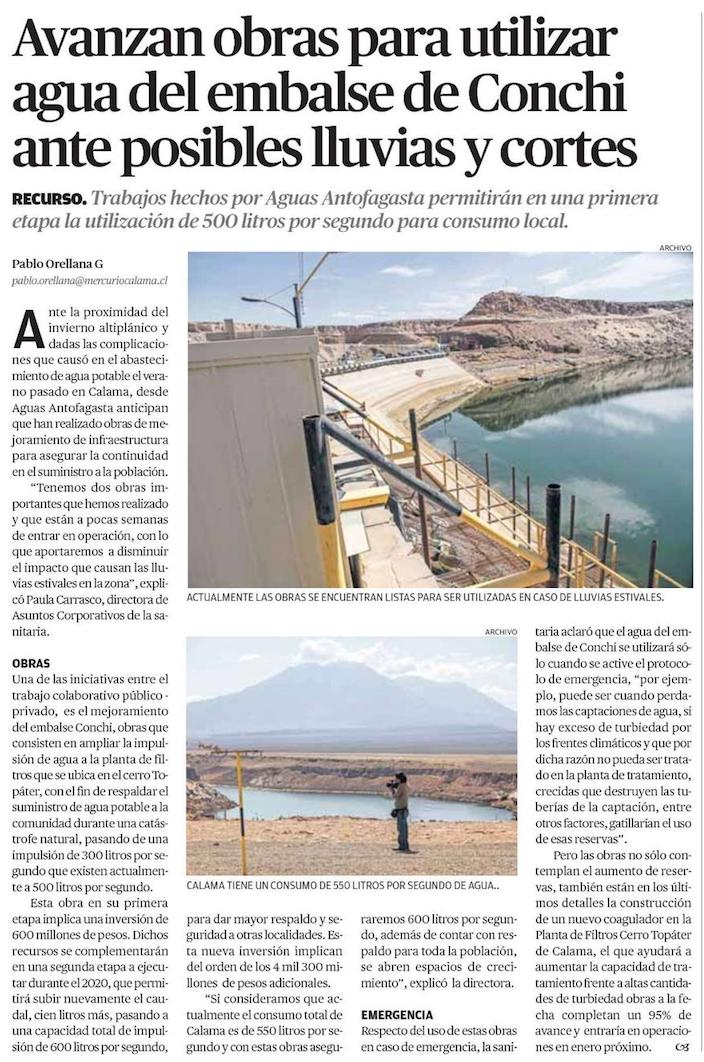 Avanzan obras sanitarias para asegurar el suministro de agua en caso de lluvias - (El Mercurio de Antofagasta)