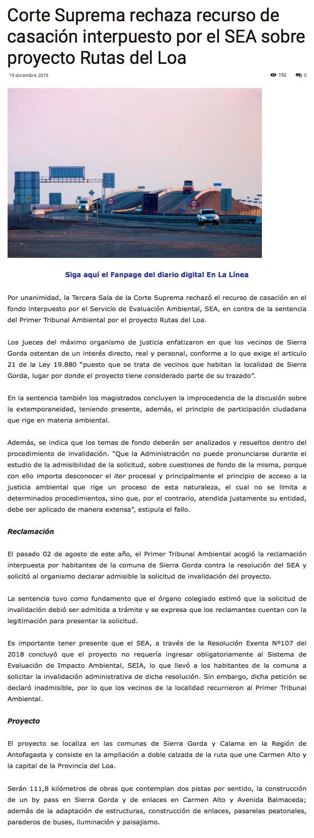 Rutas del Loa queda en suspenso tras fallo acogido por la Suprema - (El Mercurio de Calama)