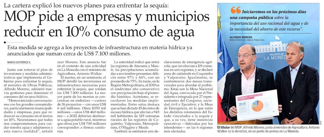 Sequía golpea suministro de agua potable en Chile y obliga al gobierno a tomar medidas - (americaeconomia online)