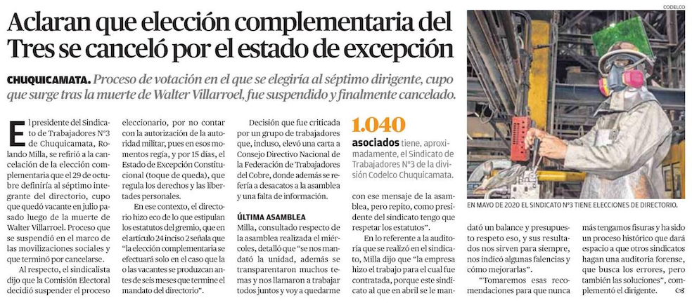 Aclaran que elección complementaria del Tres se canceló por el estado de excepción - (Estrella del Loa)