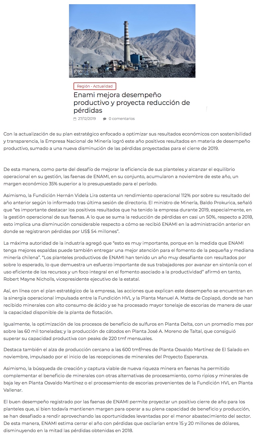 Enami calcula una nueva reducción de pérdidas - (El Mercurio de Santiago)