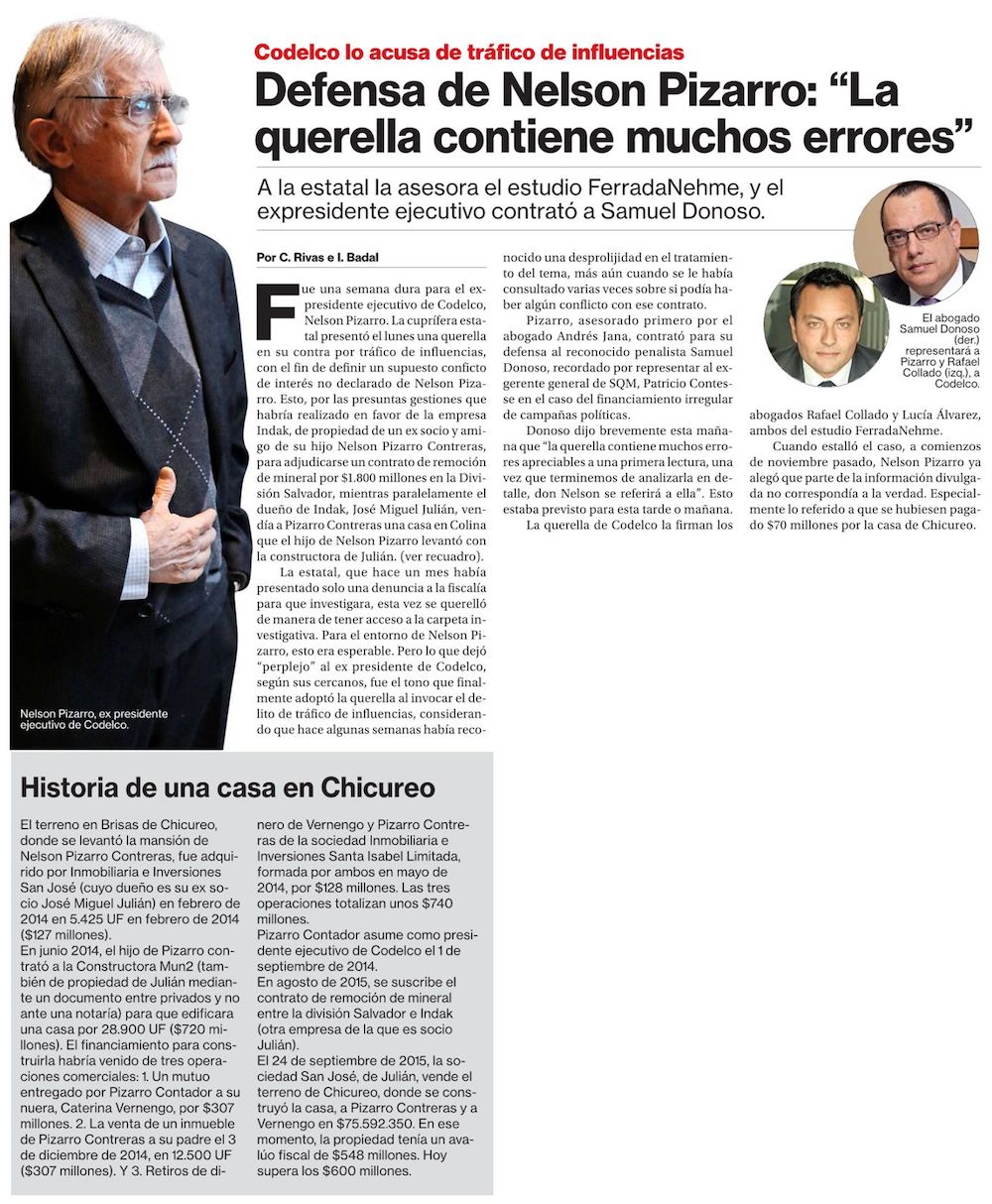 Defensa de Nelson Pizarro responde a Codelco y apunta a que auditoría habría desestimado conflictos de interés - (El Mercurio de Santiago)