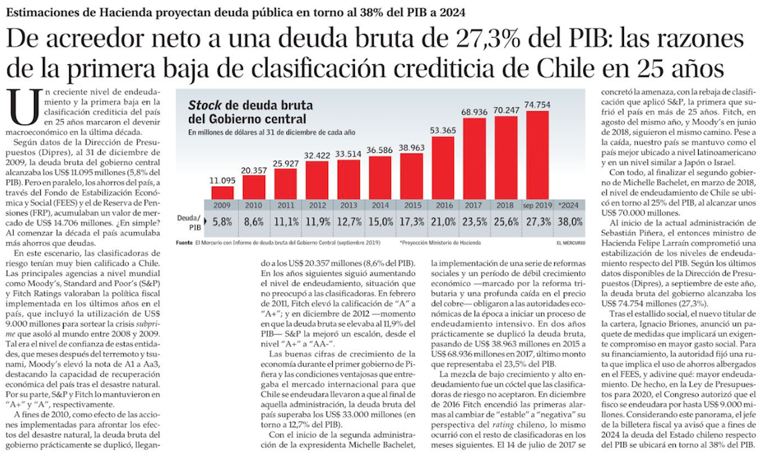 Dipres: deuda pública alcanza a 27,3% del PIB y déficit fiscal efectivo llega a 1,7% a noviembre - (Pulso)