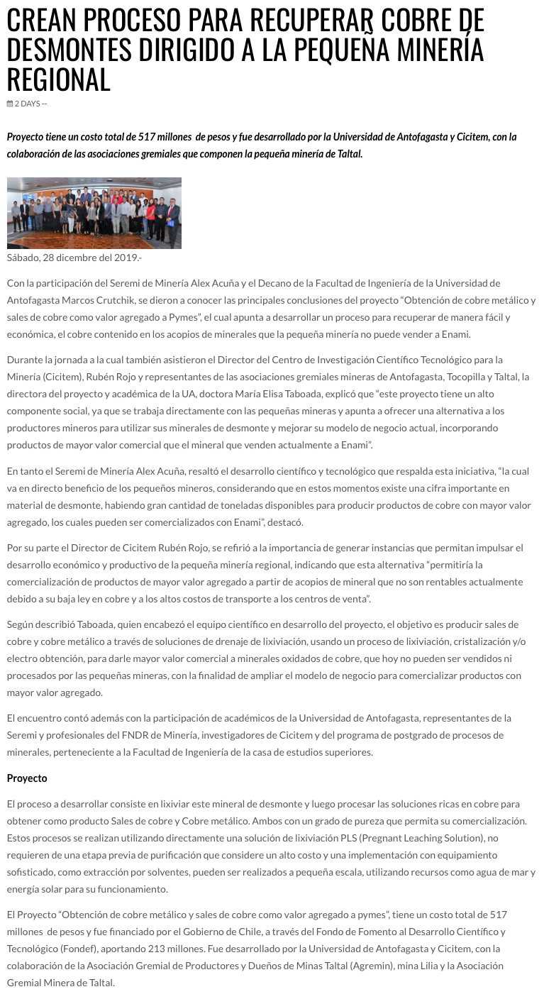 Presentan proyecto para recuperar cobre de acopios minerales - (Estrella de Tocopilla)