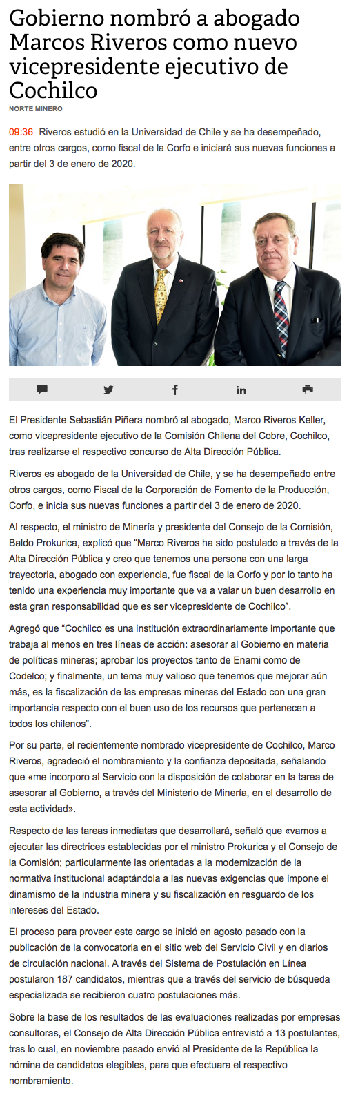 Abogado Marco Riveros asume vicepresidencia ejecutiva de Cochilco - (DF Online)