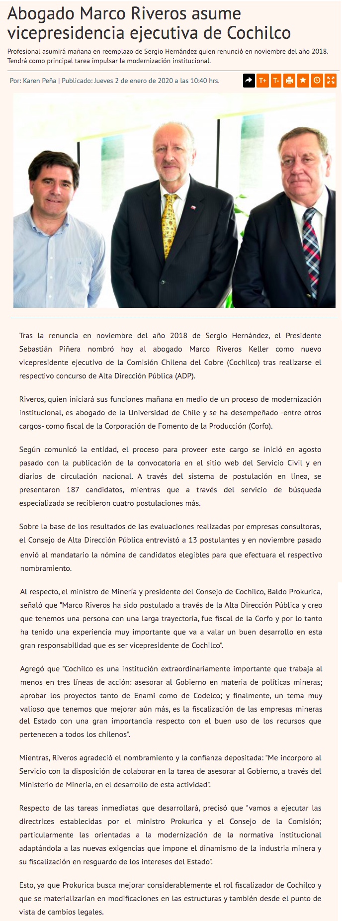 Gobierno nombró a abogado Marcos Riveros como nuevo vicepresidente ejecutivo de Cochilco - (norteminero online)