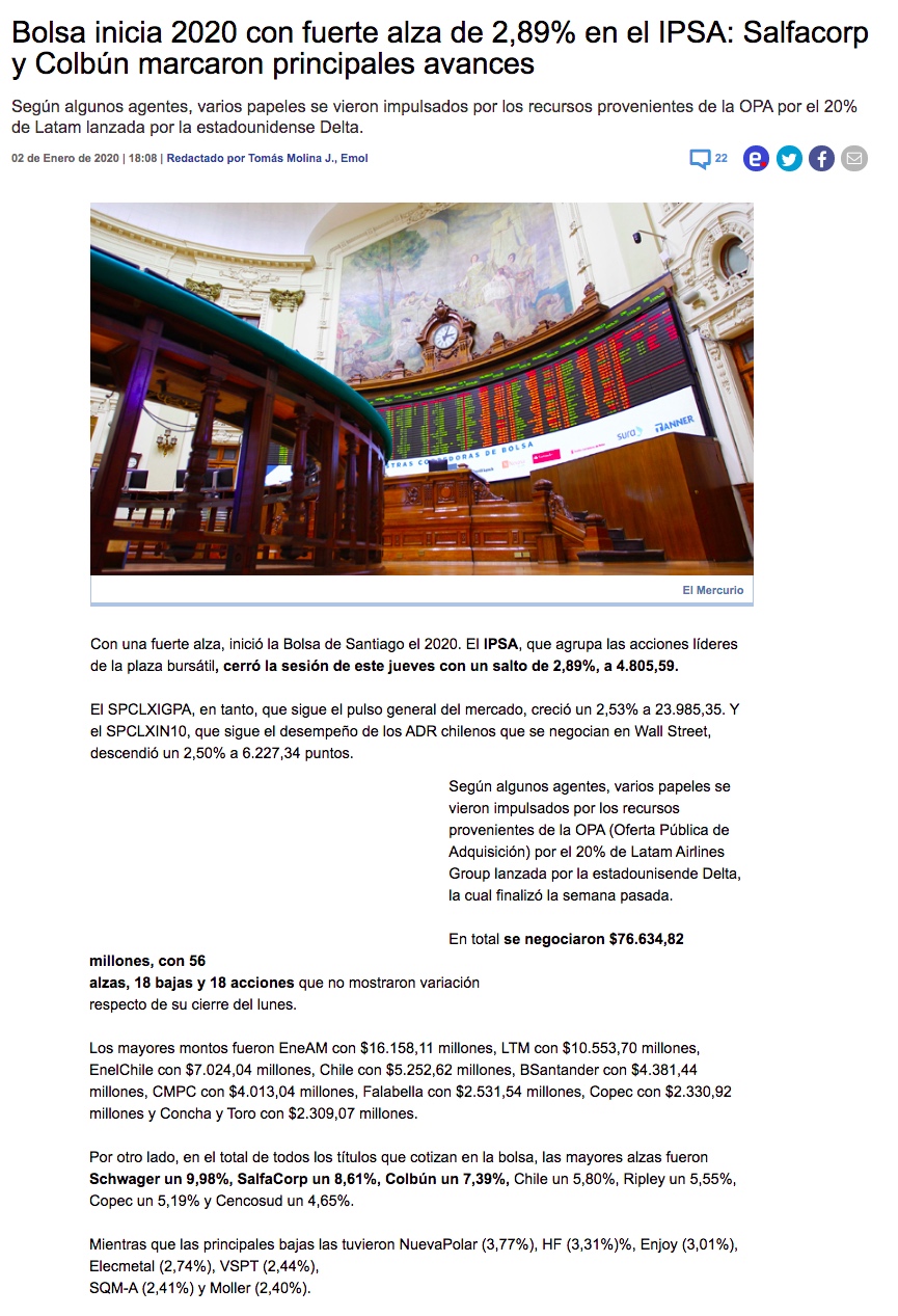 IPSA salta 2,9% y anota mejor inicio de año desde 1994 - (El Mercurio de Santiago)