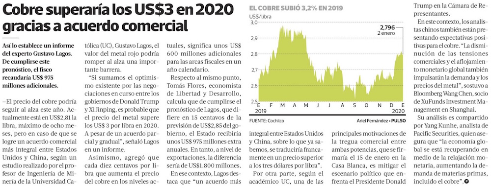 Gustavo Lagos: cobre superaría los US$3 la libra con acuerdo entre EE.UU. y China - (mch.cl)
