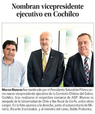 Abogado Marco Riveros asume vicepresidencia ejecutiva de Cochilco - (DF Online)