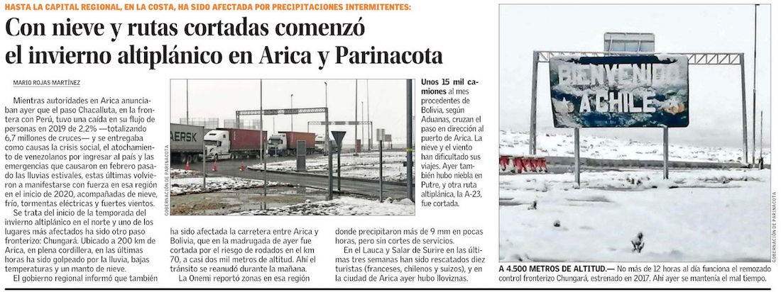 Lluvia y nieve cayeron en nuestra región - (Estrella de Arica)