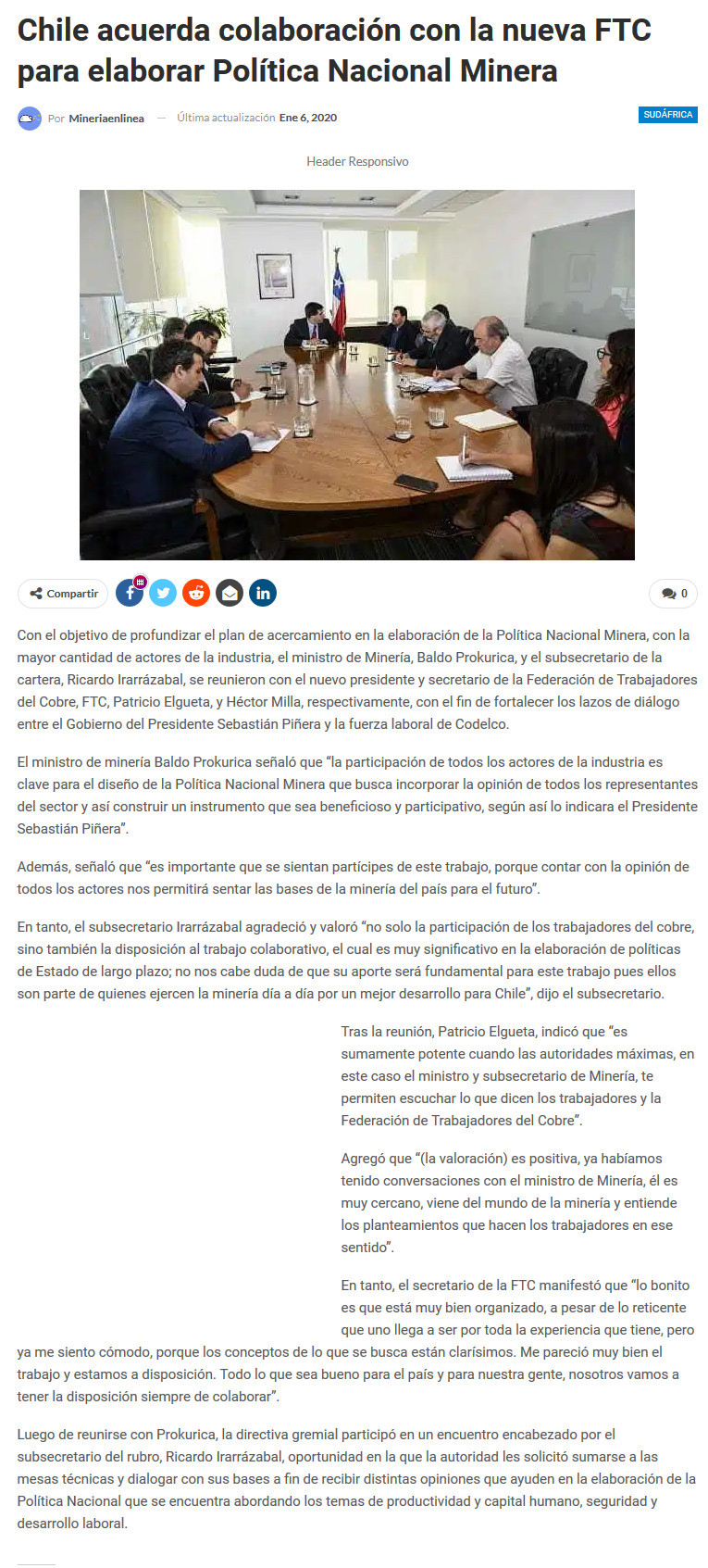 Líderes de FTC sostiene encuentro con ministro Prokurica por Política Nacional Minera - (norteminero online)