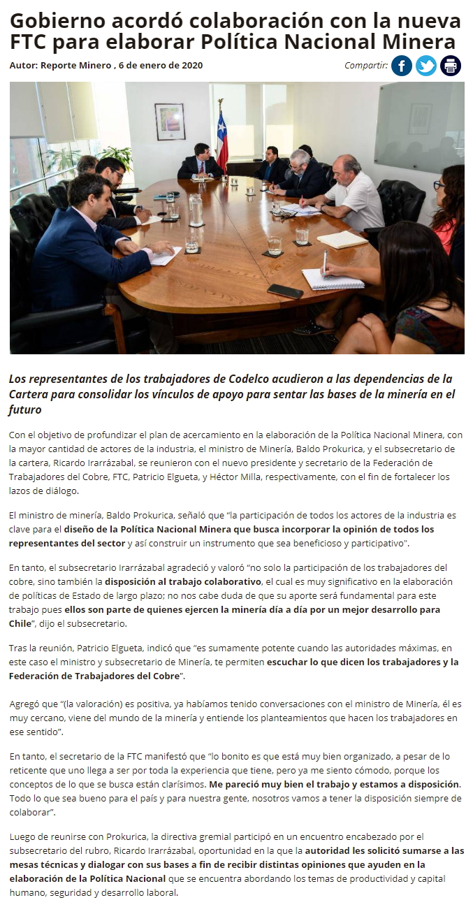 Líderes de FTC sostiene encuentro con ministro Prokurica por Política Nacional Minera - (norteminero online)