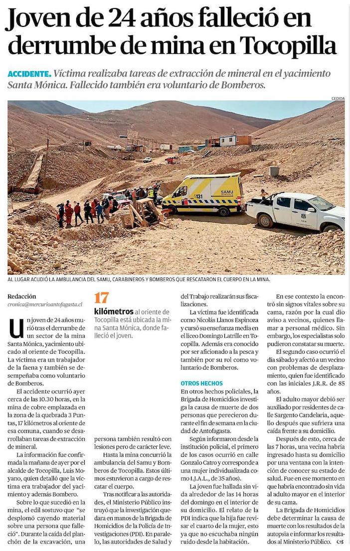 Tocopillano fallece en fatal accidente minero - (Estrella de Tocopilla)