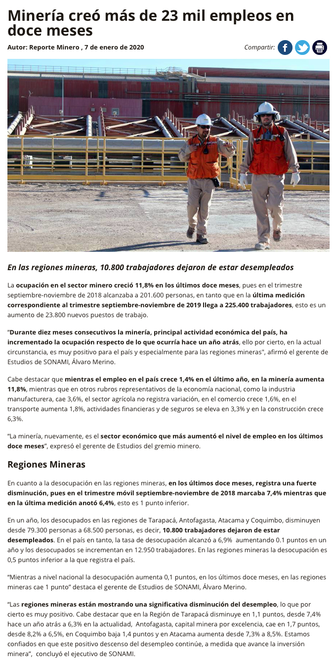 11,8% creció el empleo en la minería - (La Segunda)