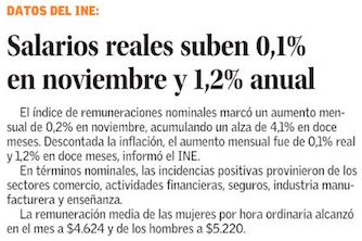Ingresos salariales se desaceleraron en el país durante noviembre - (Diario Financiero)