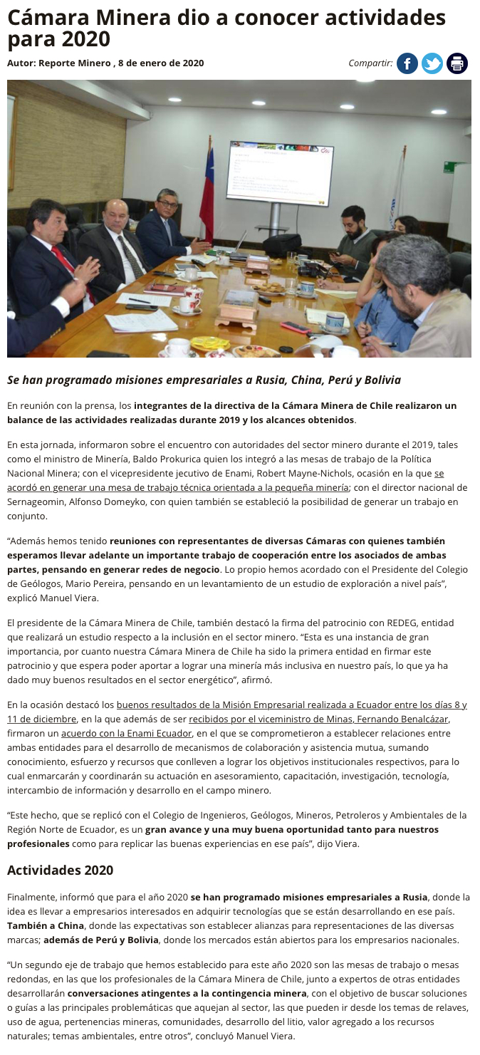 Cámara Minera de Chile proyecta misiones empresariales-tecnológicas a China y Rusia en 2020 - (norteminero online)