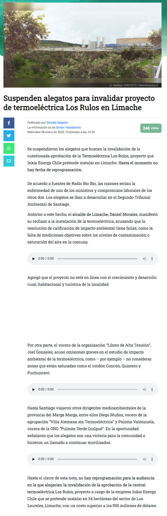 Tribunal Ambiental suspende alegatos por RCA de la termoeléctrica “Los Rulos” - (El Mercurio de Valparaíso)