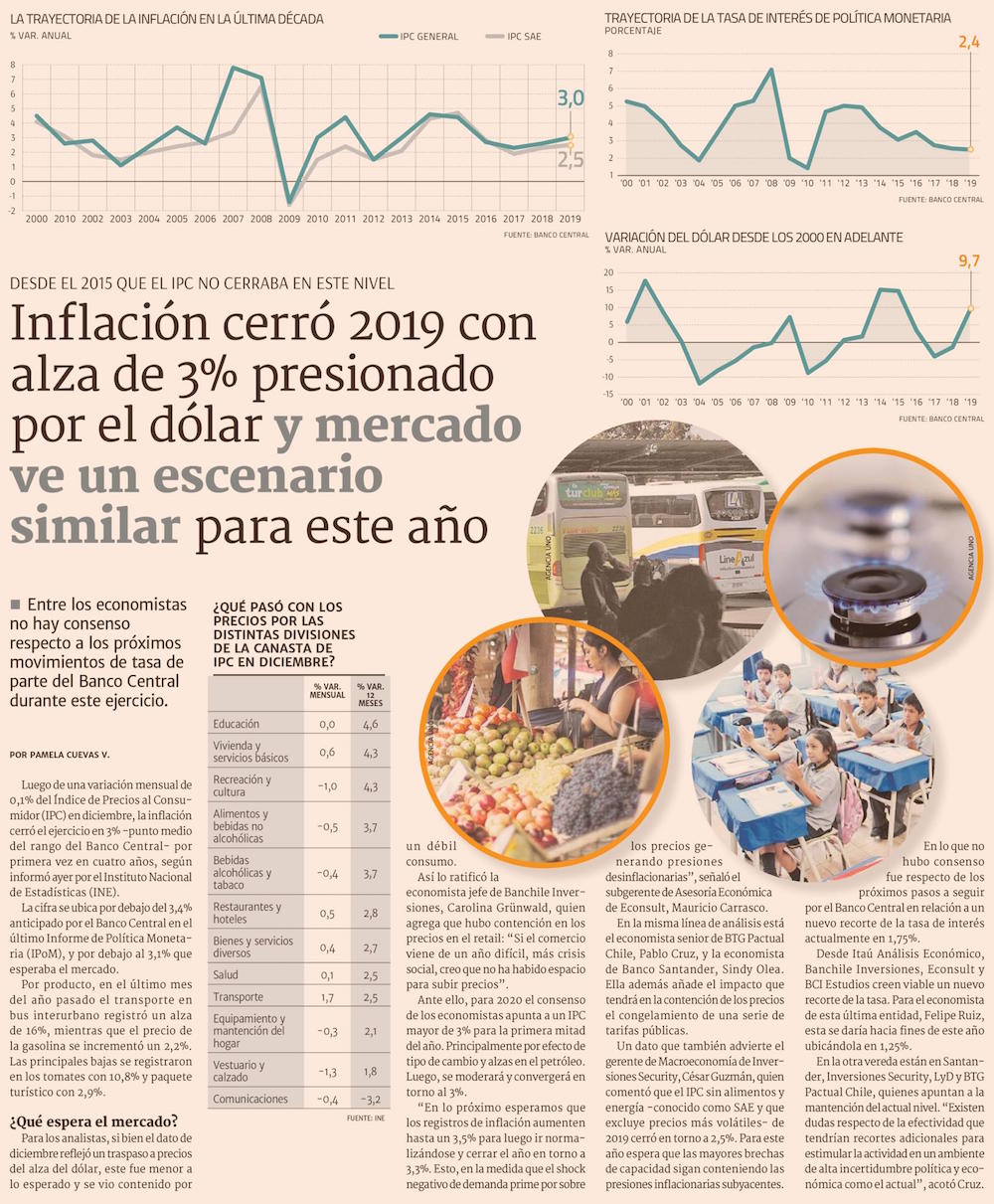 Inflación da otra buena noticia económica pero se espera incremento en 2020 - (La Segunda)