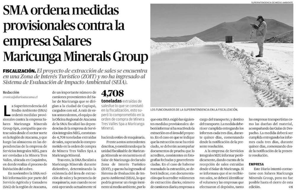 Atacama: SMA ordena medidas provisionales contra la empresa Salares Maricunga Minerals Group SpA - (madero.cl)