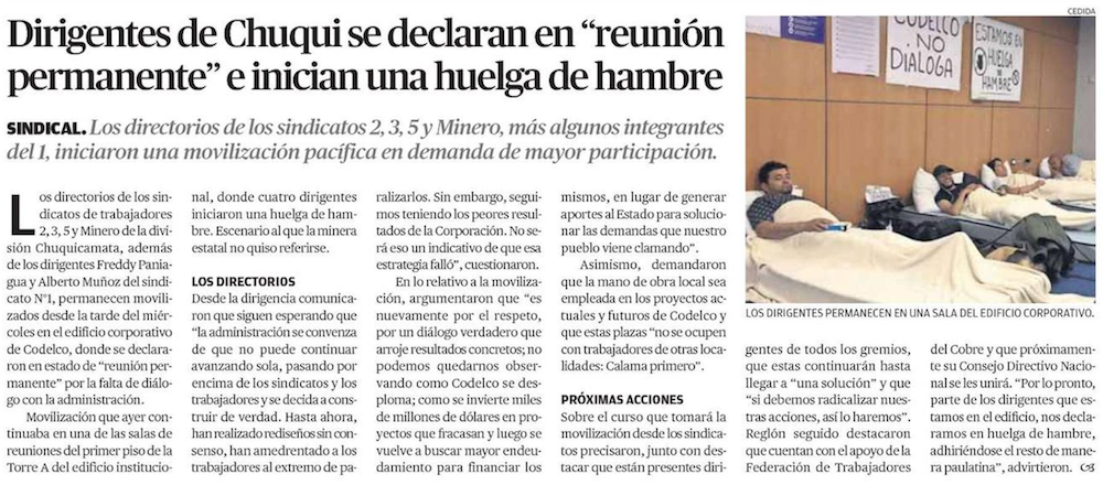 Dirigentes de Chuqui intensifican protestas contra la minera - (El Mercurio de Santiago)