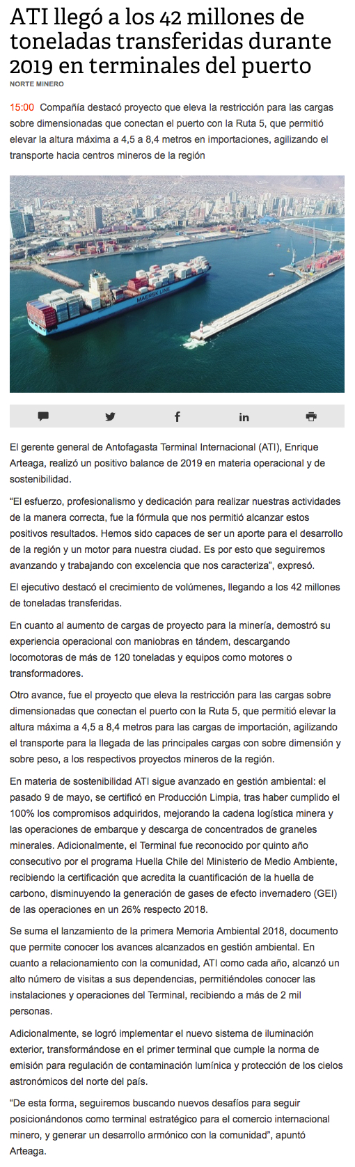Antofagasta Terminal Internacional evaluó 2019 con un positivo balance - (mundomaritimo)