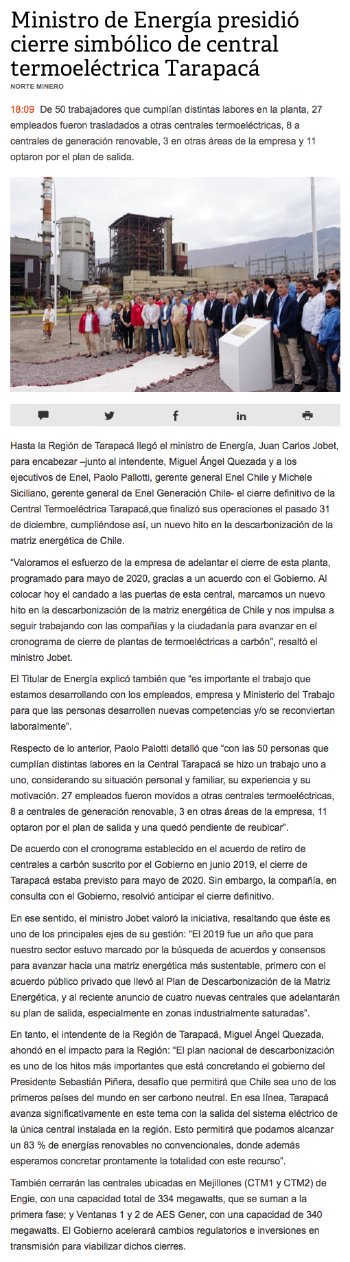 Con presencia de Ministro de Energía Enel oficializó desconexión de Planta Tarapacá tras 21 años de operaciones - (El Longino de Iquique)