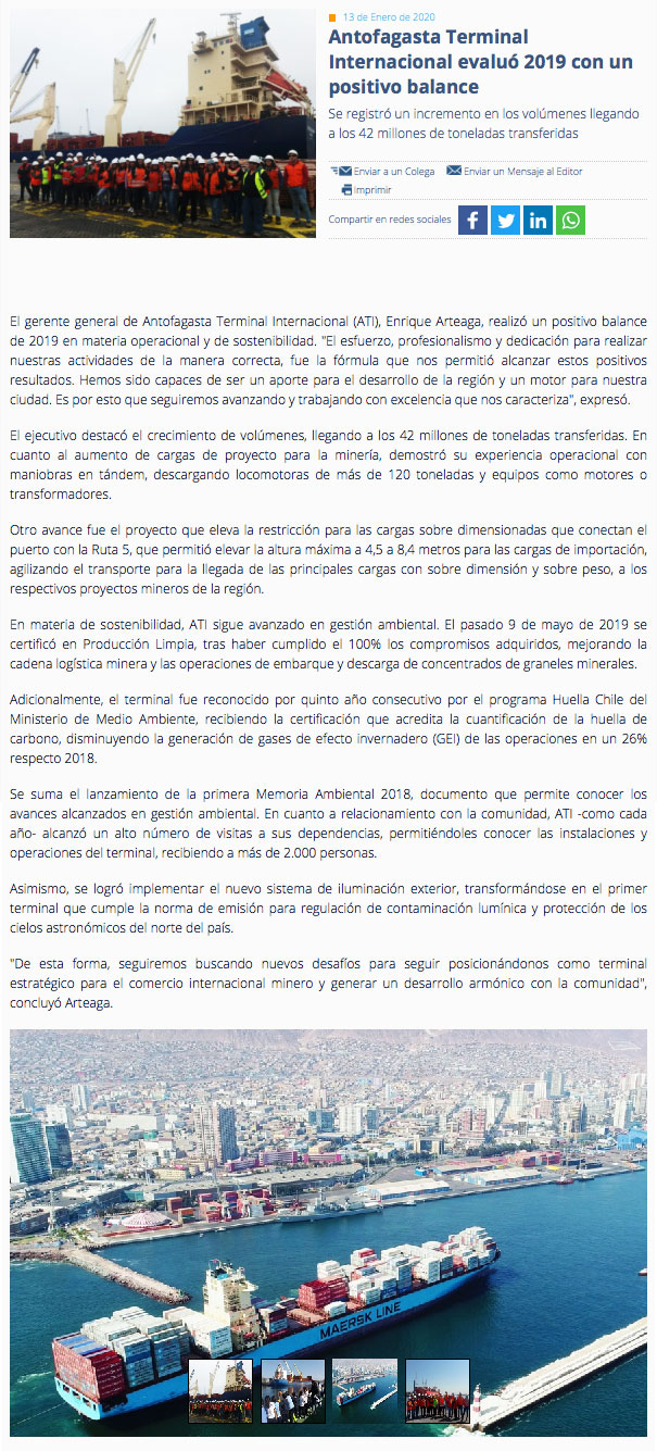 ATI llegó a los 42 millones de toneladas transferidas durante 2019 en terminales del puerto - (norteminero online)