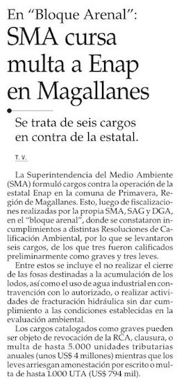 SMA formula cargos contra ENAP en Magallanes por no cumplir obligaciones - (Diario Financiero)