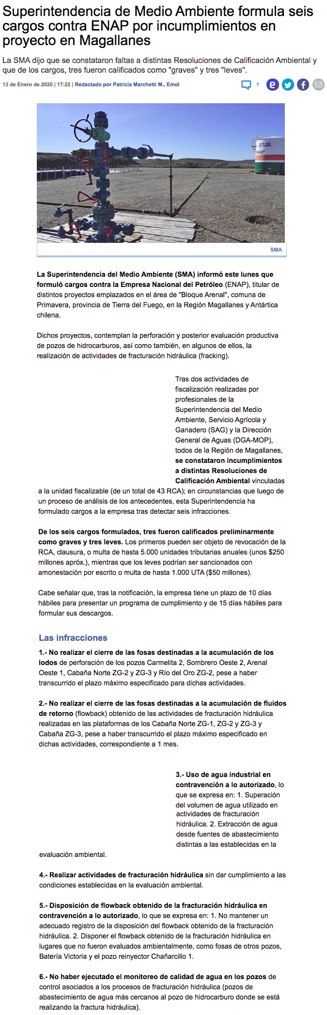 SMA formula cargos contra ENAP en Magallanes por no cumplir obligaciones - (Diario Financiero)