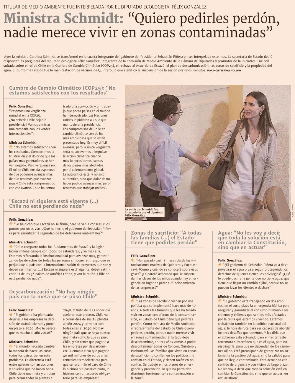 Ministra Schmidt pide perdón por las zonas de sacrificio en interpelación - (eldinamo)