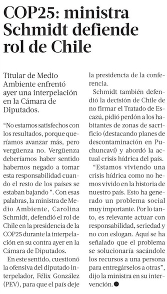 Ministra Schmidt pide perdón por las zonas de sacrificio en interpelación - (eldinamo)