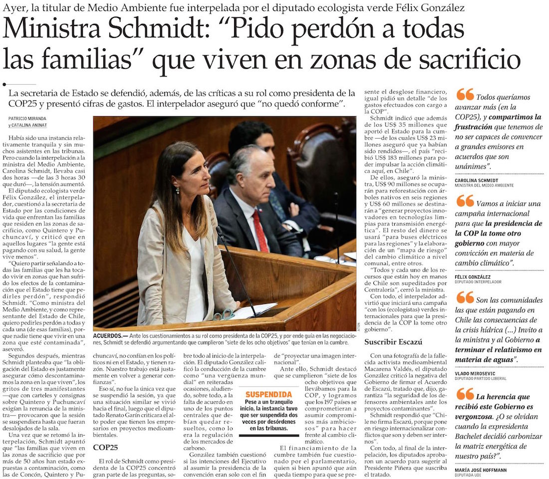 Ministra Schmidt pide perdón por las zonas de sacrificio en interpelación - (eldinamo)