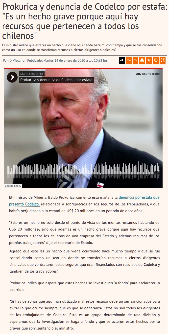 Ministro de Minería preocupado por supuesta estafa en Codelco: Es un hecho grave - (cooperativa online)