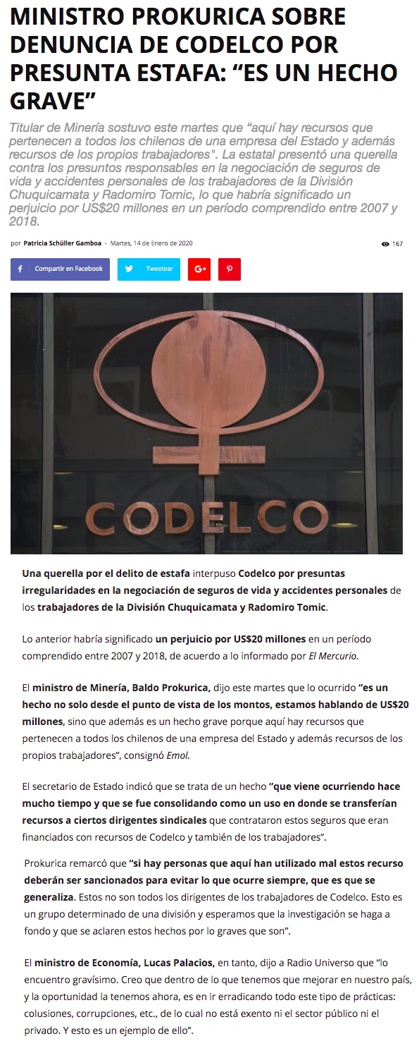 Ministro de Minería preocupado por supuesta estafa en Codelco: Es un hecho grave - (cooperativa online)