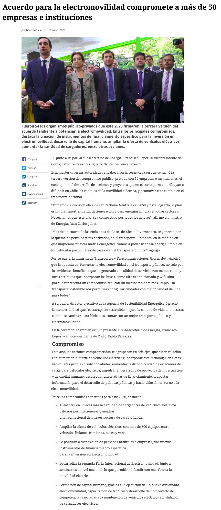 Corfo creará consorcio para impulsar la electromovilidad - (El Mercurio de Santiago)