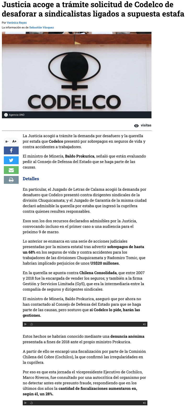 Juzgado de Letras acogió a trámite demanda de Codelco para desaforar a dirigentes sindicales involucrados en estafa - (El Mostrador)