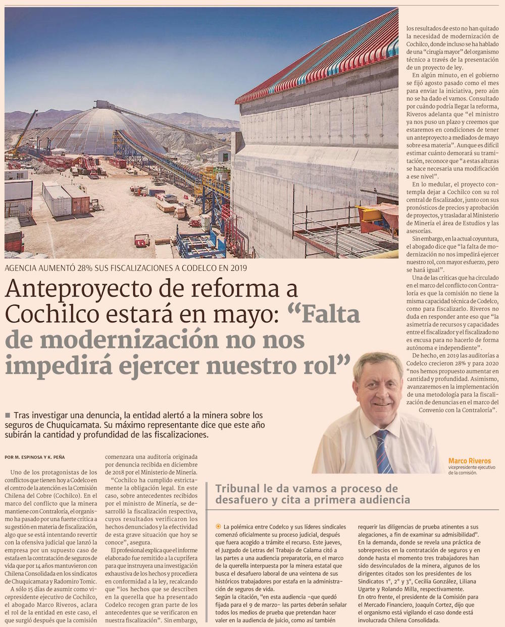 Nuevo líder de Cochilco urge modernización de la entidad - (El Mercurio de Santiago)