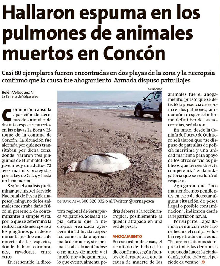 Investigan masiva muerte de fauna marina en Concón - (El Mercurio de Valparaíso)